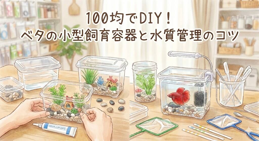 100均のセリアのウォータージャグとメダカのソイル、麦飯石を使い、330円で楽しみながら水換えができる飼育容器を自作しました。背景は黒く塗装して、おしゃれに仕上げています。当サイトの記事は全てyoutubeにて映像と共に動画でもご覧いただけます。100均アイテムで作るベタの飼育容器の魅力と工夫ベタ飼...