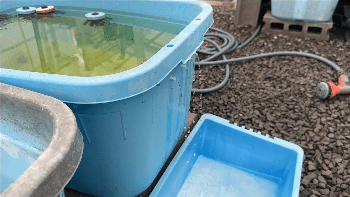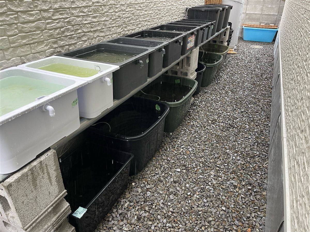 屋外でのメダカ飼育では、スペースを有効活用するために二段構造で容器を設置される方も多いと思います。