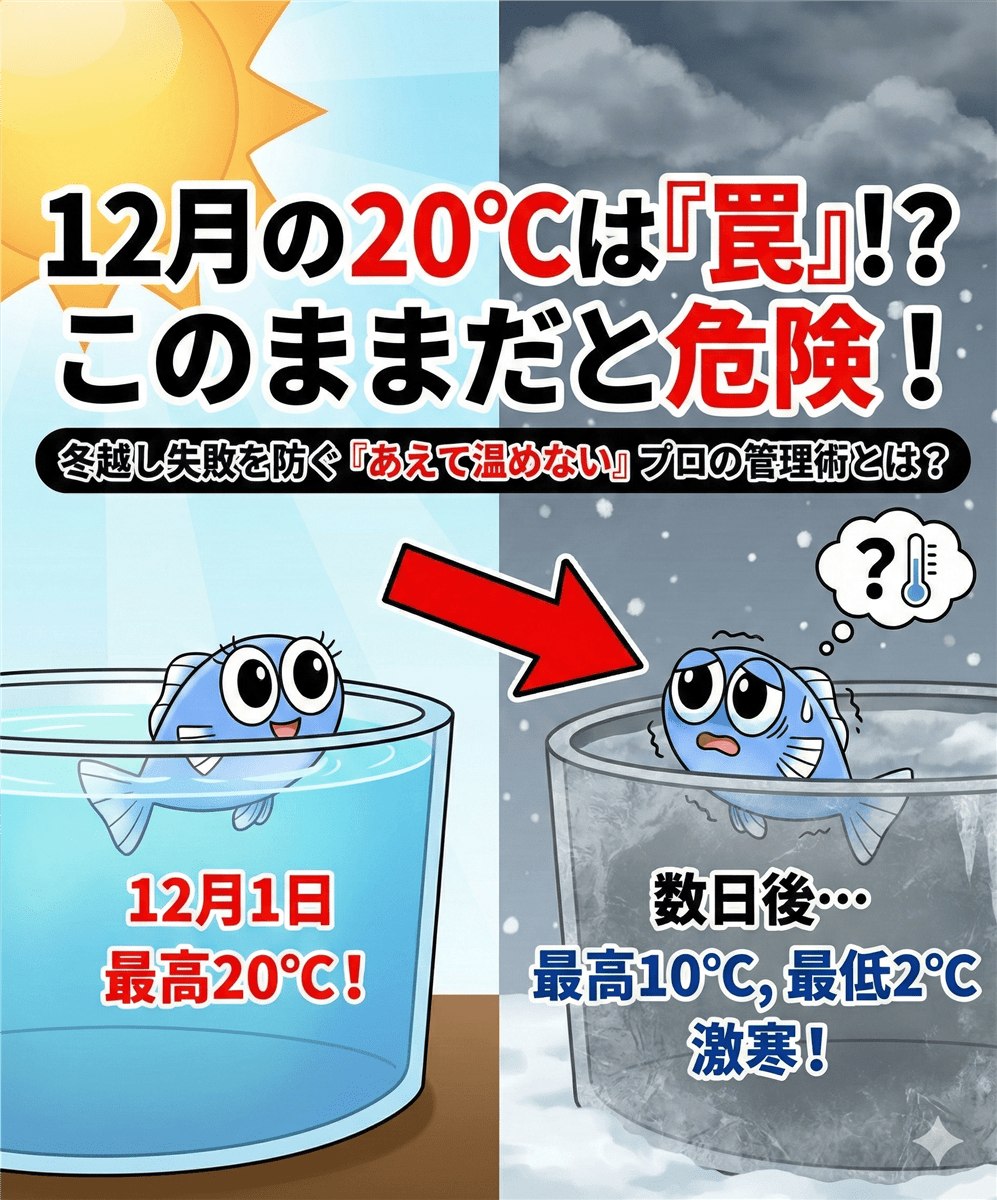 今回は、この後に必ずやってくる「寒波(揺り戻し)」に備え、あえて「水温を上げない」という管理方法について、その科学的な根拠と共にお話しします。
