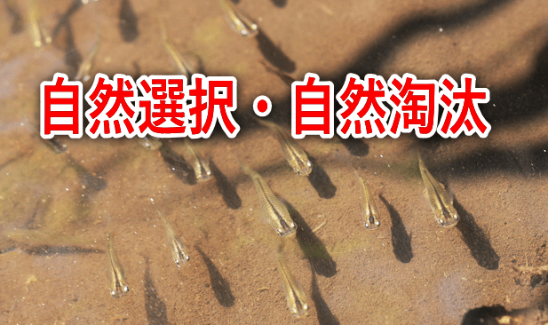たとえば、視力の良いメダカと悪いメダカがいた場合、天敵が多い環境では視力の良いメダカが生き残りやすく、その遺伝子が集団内で増えていきます。