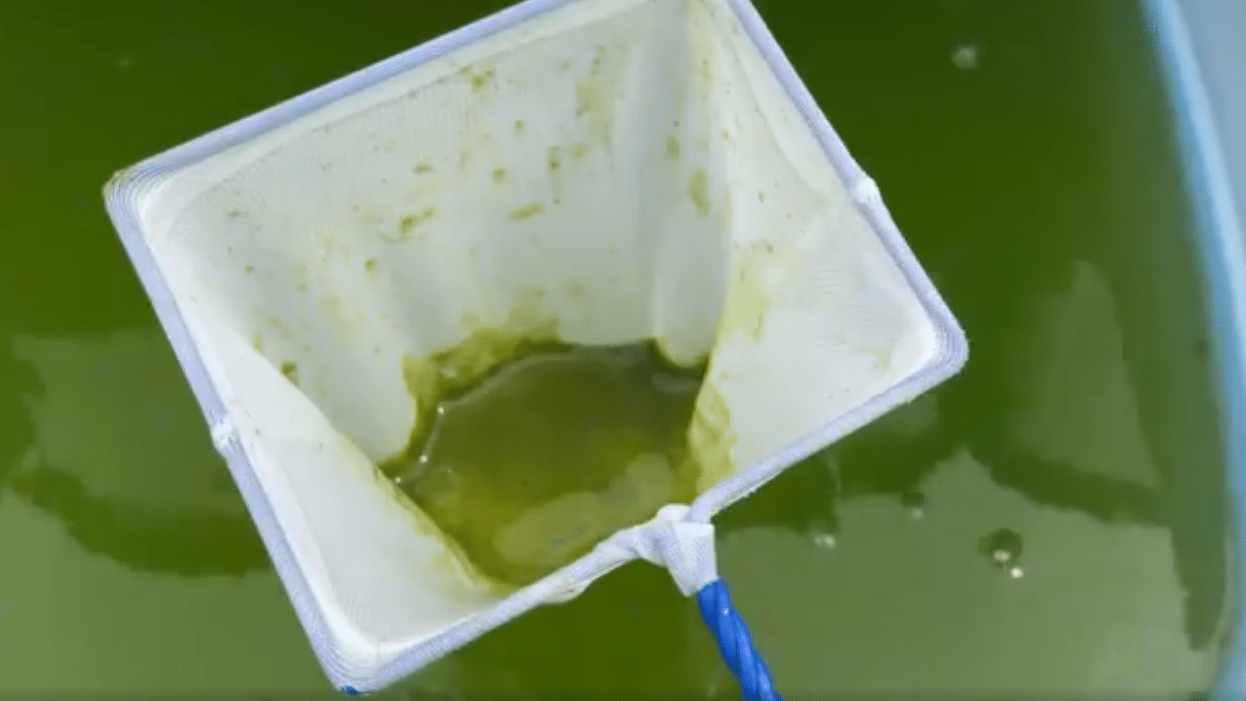 青水かどうかを確認する簡単な方法の一つに、細かい網で水をすくう方法があります。