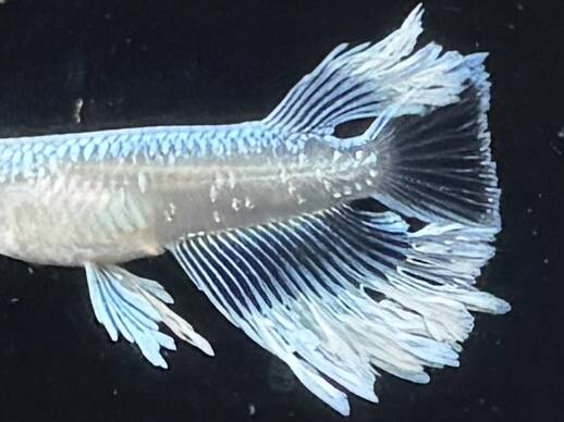 このグアニンがヒレ先に集まることで青白くヒカリ輝き、フサヒレとも呼ばれるようなフリル(ヒレ先)が分岐し輝いて見える個体もいます。